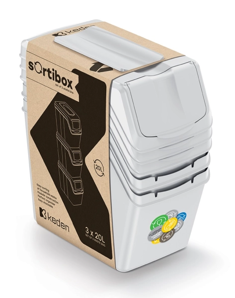 Zestaw pojemników na odpady w kolorze siwym 3 sztuki o pojemności 20 litrów każdy Sortibox marki Keden