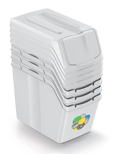 - w komplecie zestaw kolorowych naklejek z oznaczeniem rodzajów frakcji (papier, szkło, plastik/metal, organiczne, inne)