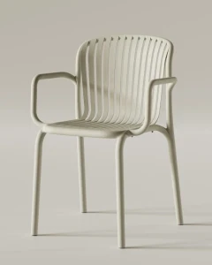 Krzesło ogrodowe z podłokietnikami kremowe Brene to elegancki mebel, który łączy nowoczesny design z klimatami retro. Krzesło Brene jest odporne na warunki atmosferyczne, idealne do ogrodów, tarasów oraz przestrzeni restauracyjnych. Krzesło na taras jest wykonane z ekologicznych, nadających się do recyklingu tworzyw, zapewnia komfort i trwałość na długie lata.