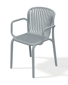 Krzesło ogrodowe z podłokietnikami szare Brene to elegancki mebel, który łączy nowoczesny design z klimatami retro. Krzesło Brene jest odporne na warunki atmosferyczne, idealne do ogrodów, tarasów oraz przestrzeni restauracyjnych. Krzesło na taras jest wykonane z ekologicznych, nadających się do recyklingu tworzyw, zapewnia komfort i trwałość na długie lata.