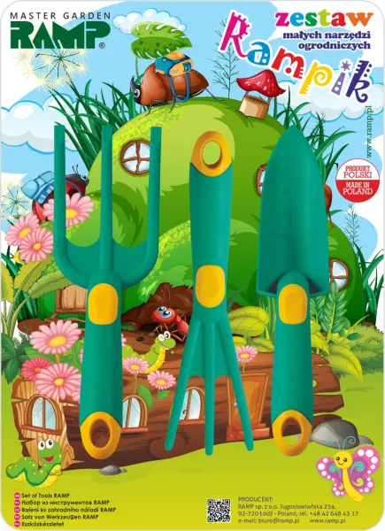 Rozwijaj pasję do natury i ogrodnictwa razem z zestawem małego ogrodnika Rampik! To kolorowy komplet narzędzi dla dzieci, który zawiera widełki, wąską łopatkę i pazurki – wszystkie wykonane z wysokiej jakości, bezpiecznego tworzywa sztucznego. Dzięki lekkiej konstrukcji i ergonomicznemu kształtowi narzędzia idealnie pasują do małych rączek, ułatwiając kopanie, sadzenie i pielęgnację roślin. Zestaw jest zgodny z regulacjami REACH, nie zawiera substancji szkodliwych i spełnia normy bezpieczeństwa GPSR. Doskonały prezent dla każdego małego ogrodnika, który chce pomagać w ogrodzie lub bawić się w sadzenie kwiatków na balkonie!
