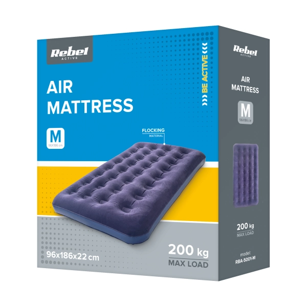 Materac dmuchany do spania jednoosobowy o wymiarach 186 × 96 × 22 cm z pompką Rebel RBA-5001-M