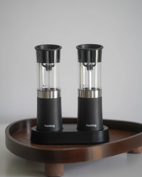 Elektryczne młynki do pieprzu i soli akumulatorowe ze stacją ładującą polskiej marki Huslog - ciesz się wyjątkowym aromatem potraw