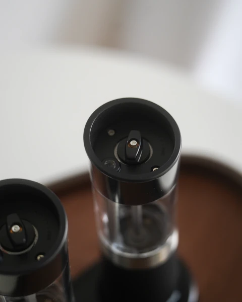 Młynki do pieprzu i soli wraz ze stacją ładującą posiadają regulowaną grubość mielenia, dzięki czemu można dostosować wielkość ziaren do aktualnie przygotowywanej potrawy. Dużą zaletą elektrycznych młynków do przypraw jest fakt, iż uruchamiają się automatycznie po przechyleniu i kończą swoje działanie po ponownym odwróceniu.