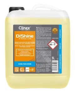 Nabłyszczacz do zmywarek gastronomicznych polskiej marki Clinex doskonale sprawdza się przy płukaniu i nabłyszczaniu naczyń. Preparat zawiera specjalny osuszacz, który przyśpiesza spływanie wody z powierzchni, dzięki czemu eliminuje powstawanie plan i zacieków. Płyn nabłyszczający do zmywarki zapobiega osadzaniu się kamienia w zmywarkach. Nabłyszczacz do zmywarek gastronomicznych Clinex DiShine Premium jest skuteczny także w twardej wodzie.