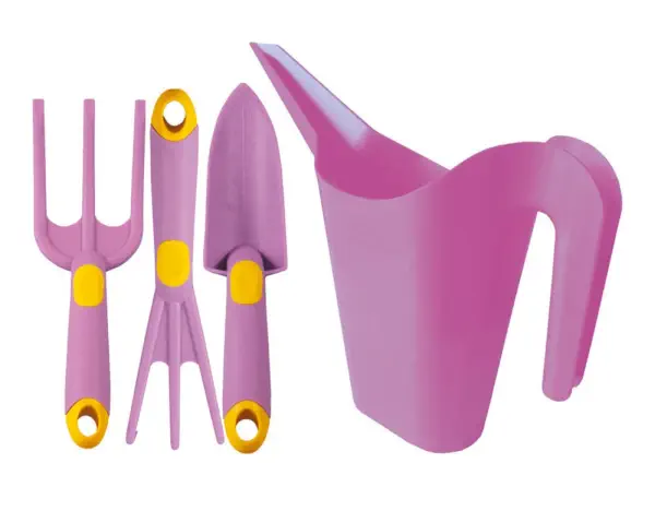 Zestaw narzędzi ogrodniczych dla dzieci z konewką w kolorze fioletowym Rampik RN3530KF - idealny dla małego ogrodnika
