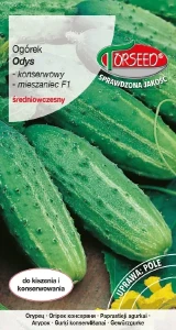 Ogórek gruntowy konserwowy Odys F1 to średnio-wczesna odmiana mieszańcowa, wyróżniająca się wyjątkową plennością i odpornością na choroby, w szczególności na mączniaka rzekomego. Dzięki swojej tolerancji na chłody oraz silnemu wzrostowi roślin, znakomicie sprawdza się zarówno w uprawie amatorskiej, jak i towarowej. Owoce mają kształt smukłych, cylindrycznych ogórków o długości 8–10 cm. Skórka pokryta jest grubymi brodawkami i ma jednolitą, ciemnozieloną barwę, a miąższ – chrupiący, jędrny i pozbawiony goryczki. Odmiana Odys F1 to gwarancja jakości zarówno w kuchni, jak i w przetwórstwie. Dzięki niewielkiej komorze nasiennej i zwartemu miąższowi doskonale nadaje się do kiszenia, konserwowania i marynowania. Owoce zachowują swój smak i teksturę również po obróbce termicznej.