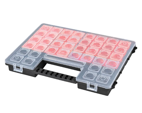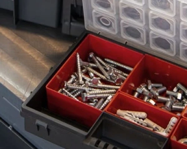 Organizer na różnego rodzaju części jak np. gwoździe, bity czy wkręty. Wyposażony jest w aż 14 pojemników Combibox w różnych rozmiarach. Dostosujesz za ich pomocą wnętrze organizera do swoich potrzeb. Przezroczysta pokrywa ułatwia identyfikację zawartości bez potrzeby każdorazowego otwierania organizera, zwłaszcza gdy posiadasz więcej pojemników tego typu.