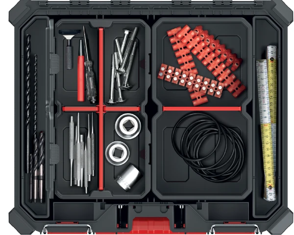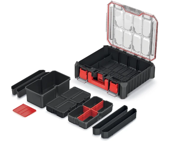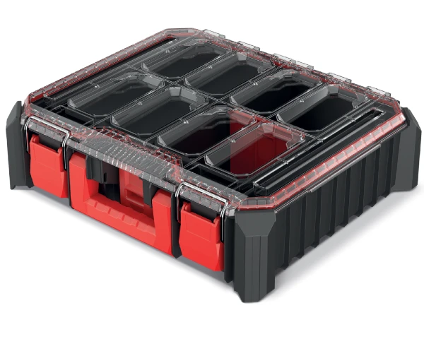 Organizer CMX wyróżnia się kompaktowym rozmiarami przy maksymalnym wykorzystaniu przestrzeni na narzędzia ręczne oraz drobne elementy. Dodatkowo jest on pyłoszczelny i odporny na zalanie. Z kolei pokrywy walizek zaprojektowane są w sposób, który nie pozwala na przesypywanie się drobnych elementów między komorami. Dzięki czemu jeszcze łatwiej jest utrzymać czystość i porządek wewnątrz pojemnika.