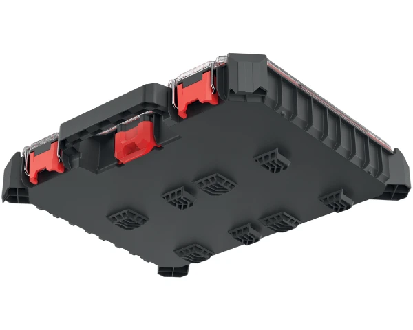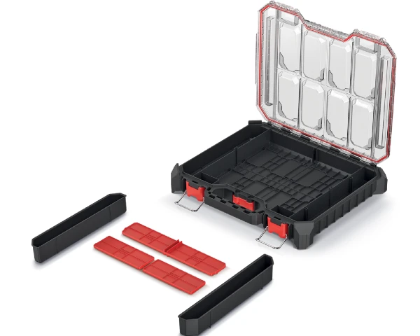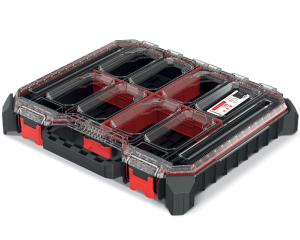 Organizery są pyłoszczelne i odporne na zalanie. Pokrywy walizek zaprojektowane są w sposób, który nie pozwala na przesypywanie się drobnych elementów między komorami.