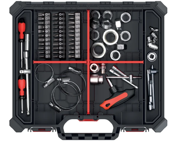 Dzięki praktycznym przegródkom możesz swobodnie segregować swoje narzędzia i akcesoria oraz mieć je zawsze pod ręką. Nie musisz już szukać swoich najważniejszych narzędzi. Teraz zorganizujesz je w sposób, który ułatwi prace i pozwoli zaoszczędzić czas.
