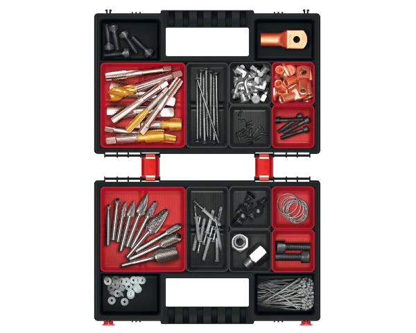Organizer warsztatowy renomowanej polskiej marki Kistenbergo to tak naprawdę dwa spięte ze sobą organizery NORB 30. Rozwiązanie to idealne sprawdzi się do przechowywania i sortowania drobnych przedmiotów takich jak narzędzia, akcesoria do pracy lub hobby. Zaprojektowane z myślą o wygodzie użytkowania, organizery zapewniają nie tylko porządek, ale także trwałość i funkcjonalność. W zestawie znajduje się 12 wyjmowanych kubeczków (po 6 w jednym organizerze), które umożliwiają podział przestrzeni w organizatorze, co ułatwia segregację i uporządkowanie drobnych przedmiotów. Nasz tania i mocna walizka od polskiego producenta wyróżnia się kompaktowym rozmiarem przy maksymalnym wykorzystaniu przestrzeni na małe narzędzia i akcesoria. Dzięki przezroczystej pokrywie, masz pewność, że zawsze znajdziesz to, czego potrzebujesz. Zestaw organizerów jest idealny do przechowywania narzędzi, materiałów do hobby, biżuterii, drobnych akcesoriów do majsterkowania i wielu innych przedmiotów. Doskonale sprawdzą się w warsztatach, garażach, biurach czy w domu. Pojemniki są wyposażone w solidne zatrzaski, które trzymają pokrywy mocno zamknięte. Dzięki temu nie musisz martwić się o przypadkowe otwarcie i rozsypanie zawartości. Za pomocą wygodnej raczki polski organizer jest łatwy do przenoszenia.