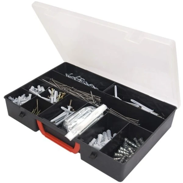 Organizer warsztatowy 35 cm Patrol Classic 350 to prosty i funkcjonalny organizer na drobne części jak np. wkręty, gwoździe, śruby, nity czy inne elementy, a nawet niewielkie narzędzia. Wykonany z twardego tworzywa sztucznego, gwarantuje bezpieczeństwo przedmiotom schowanym wewnątrz. Przezroczysta pokrywa z poliwęglanów natomiast umożliwi szukanie części bez potrzeby otwierania organizera. Wyposażony jest w 11 głębokich komór, co ułatwi utrzymanie porządku.