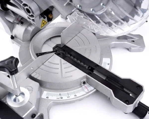 Ukośnica wyposażona jest w regulowany laser który, wskazuje precyzyjnie krawędź ciętą, co znacznie usprawnia pracę i sprawia, że cięcia będą dokładniejsze.