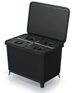 Pojemnik na śmieci z koszami 4 x 10 litrów i klapką serii Systema marki Keden w ekskluzywny sposób segreguje śmieci w firmie i domu