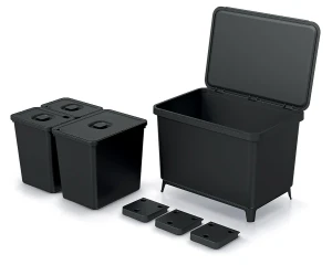 Modułowa forma zestawu koszy na śmieci i wyjątkowo elegancki kształt sprawiają, że ten pojemnik na odpady można ustawić w dowolnym miejscu. Wszędzie będzie ozdobą pomieszczenia, biura i domu.