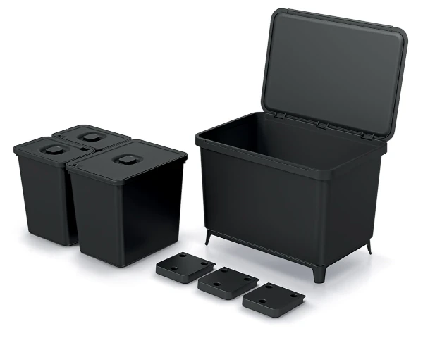 Pojemnik na śmieci z 3 koszami czarny duży Systema