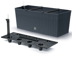 Doniczka dekoracyjna Rato Case z imitacją ratanu świetnie sprawdzi się w nowoczesnych wnętrzach o stonowanej kolorystyce. Doniczka Prosperplast doskonale nadaje się także do aranżacji ogrodu. Donica została wykonana z wysokiej jakości materiałów, które są odporne na promienie UV. Daje to pewność, że kolor donicy nie wyblaknie pod wpływem słońca. Donica podłużna sprzedawana jest w zestawie z dedykowanym systemem nawadniającym. Pozwala to w prosty sposób zadbać o właściwą kondycję rośliny.