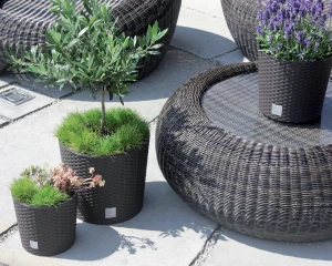 Doniczka dekoracyjna z imitacją ratanu świetnie sprawdzi się jako element wystroju zarówno w tradycyjnych, jak i nowoczesnych wnętrzach. Doniczka została wykonana z wysokiej jakości materiałów, dzięki którym jest odporna na uszkodzenia mechaniczne oraz promienie UV. Doniczka sprzedawana jest w zestawie z wkładem. Rozwiązanie to pozwoli nawiercić otwory drenażowe i odprowadzić nadmiar wody.