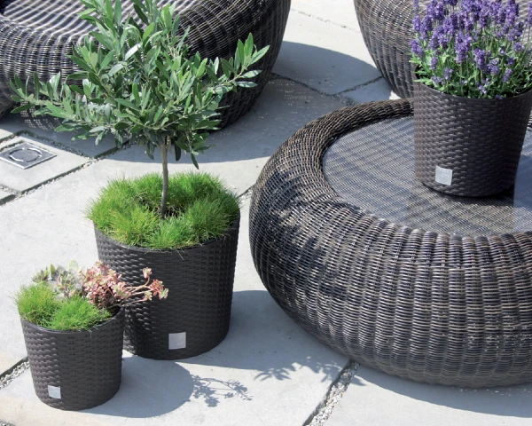 Ozdobna doniczka z imitacją ratanu w kolorze antracytowym Rato Round