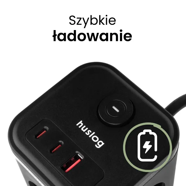 Przedłużacz kostka z ładowarką USB PD 20 W Huslog - ekspresowe ładowanie urządzeń