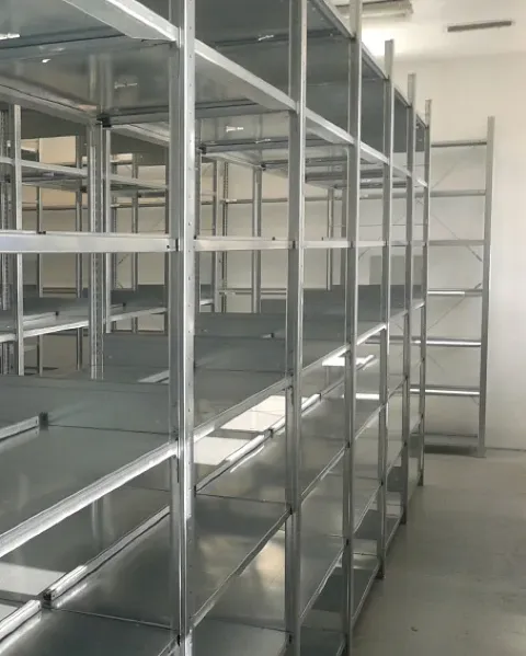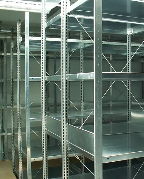 ocynkowany z perforacja do regulacją wysokości półki co 25 mm pozwalające na optymalne dopasowanie regału do magazynowanego towaru