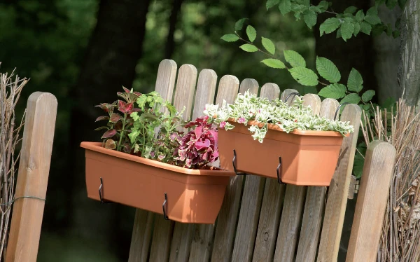 Skrzynka balkonowa jest bardzo stabilna a jej ścianki nie wyginają się na zewnątrz lub do środka. Doniczka na balustradę posiada zwiększoną odporność na uszkodzenia mechaniczne, co przekłada się bezpośrednio na dłuższą eksploatację. Polipropylen to lekki materiał, więc przenoszenie skrzynki balkonowej nie sprawia problemu - doniczka waży jedynie 290 g. Dodatkowo tworzywo jest wytrzymałe i odporne na działanie promieni słonecznych, dzięki czemu skrzynka balkonowa nie blaknie i długo zachowuje swój kolor. Możemy w niej sadzić roślin, które mają zdobić naszą przestrzeń przez cały rok.