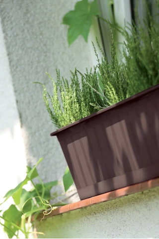 Skrzynka balkonowa jest bardzo stabilna a jej ścianki nie wyginają się na zewnątrz lub do środka. Skrzynka ba balustradę posiada zwiększoną odporność na uszkodzenia mechaniczne, co przekłada się bezpośrednio na dłuższą eksploatację. Polipropylen to lekki materiał, więc przenoszenie skrzynki balkonowej nie sprawia problemu - doniczka waży jedynie 325 g! Dodatkowo tworzywo jest wytrzymałe i odporne na działanie promieni słonecznych, dzięki czemu skrzynka balkonowa nie blaknie i długo zachowuje swój kolor. Możemy w niej sadzić roślin, które mają zdobić naszą przestrzeń przez cały rok. Do zawieszania skrzynki na balustradzie potrzebujesz minimum dwóch haków. Dedykowanymi hakami dla wszystkich skrzynek Balcony Can są haki haczyki metalowe Agrohang oraz haczyki plastikowe HangPlast.