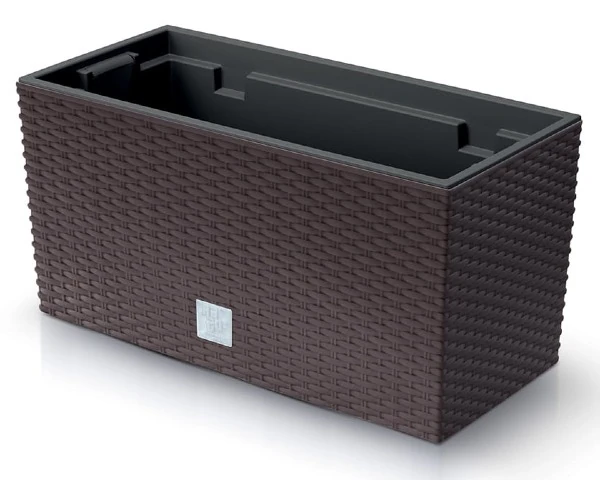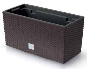 Skrzynka na kwiaty jest doskonała do aranżacji z kwitnących oraz zielonych roślin. Charakterystyczna ozdobna faktura rattanowej plecionki przyciąga wzrok i nadaje kompozycji eleganckiego charakteru. Doniczka prostokątna świetnie wygląda postawiona na parapecie lub szerokiej komodzie. Doniczka podłużna Prosperplast Rato ładnie prezentuje się zarówno w domu, jak i w strefie publicznej, np.: w restauracji lub bibliotece. Doniczka prostokątna Rato jest wykonana z najwyższej jakości tworzywa sztucznego, które jest odporne na uszkodzenia mechaniczne. Skrzynka na kwiaty dobrze znosi mróz, wysoką temperaturę i działanie promieni UV. Doskonale sprawdza się do sadzenia roślin, które mają zdobić naszą przestrzeń przez cały rok. Doniczka na balkon posiada wewnątrz wkład o pojemności 8 litrów, który zmniejsza zużycie ziemi ogrodowej. Wkład do doniczki zapewnia też odpowiedni drenaż, przez co rośliny nie stoją w wodzie, a korzenie nie gniją. W dnie osłonki jest wyznaczone miejsce, w którym można wywiercić dodatkowy otwór drenażowy. Po odprowadzeniu nadmiaru wody, otwór można zabezpieczyć dołączonym gumowym korkiem.