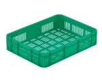 Skrzynka Euro-Norm na warzywa i owoce A/A-85. Wykonana z wytrzymałego tworzywa posiada perforowane ścianki dla zapewnienia lepszego przepływu powietrza.