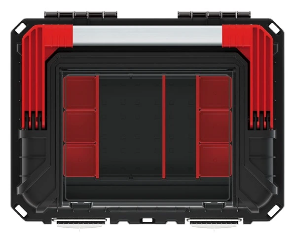 Każda skrzynka narzędziowa z tej serii posiada dwa ergonomiczne uchwyty, które ułatwiają jej transport, nawet gdy są całkowicie wypełnione ciężkim sprzętem budowlanym. Za jej pomocą możesz przemieścić nawet 25 kilogramów ładunku!