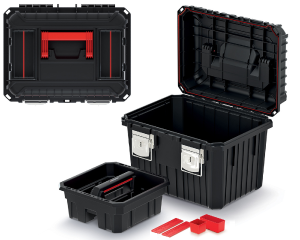 Seria skrzynek narzędziowych Heavy została zaprojektowana z myślą o przechowywaniu i transportowaniu narzędzi. Charakteryzuje się dobrze ożebrowaną konstrukcją, solidnymi klamrami i wysoką odpornością na mechaniczne uszkodzenia. Posiadają również miejsce na kłódkę - dzięki temu możesz zostawić swoje narzędzia na chwilę bez opieki. Każda skrzynka narzędziowa z tej serii posiada dwa ergonomiczne uchwyty, które ułatwiają jej transport, nawet gdy są całkowicie wypełnione ciężkim sprzętem budowlanym. Za jej pomocą możesz przemieścić nawet 25 kilogramów ładunku!