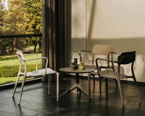 Stolik kawowy Rimo marki Ferne to wyjątkowe połączenie eleganckiego designu i funkcjonalność. Rimo sprawdzi się nie tylko na tarasie i we wnętrzach, ale także w przestrzeni miejskiej. Wyprodukowane w Polsce z tworzywa sztucznego, łączy nowoczesne technologie produkcji z najwyższą jakością wykonania. Dzięki swojej odporności na zmienne warunki atmosferyczne, stół świetnie sprawdza się w ogrodach, na tarasach, a także w restauracjach, kawiarniach czy hotelach. Projekt stołu Rimo łączy klasykę z nowoczesnym minimalizmem, co czyni go idealnym rozwiązaniem do różnorodnych aranżacji. Marka Ferne stworzyła mebel, który wyróżnia się nie tylko estetyką, ale również komfortem użytkowania. Stolik okrągły z serii Rimo jest lekki, funkcjonalny i trwały. Dzięki zastosowaniu tworzywa sztucznego odpornego na promieniowanie UV, deszcz i mróz, zachowuje swój kolor i kształt przez długi czas, co sprawia, że jest to inwestycja na lata.