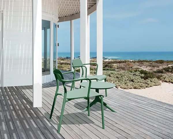 - doskonała odporność na działanie słońca, deszczu i mrozu, sprawia, że idealnie nadaje się do użytku w ogrodach, na tarasach i ogródkach restauracyjnych