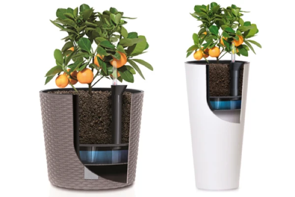 Zapas wody pozwala na pozostawienie rośliny na pewien czas bez opieki, ponieważ roślina sama pobiera wodę z zapasu zgromadzonego na dnie. Dodatkowy atut to oszczędność do 50% wody przez mniejsze odparowywanie, a czas, w którym ziemia jest wilgotna wydłuża się.