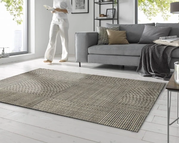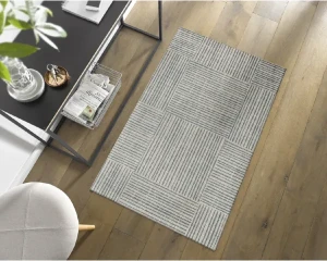 Wycieraczka pod drzwi o wymiarach 120 x 70 cm z geometrycznym motywem. Trwałe włókna poliamidowe skutecznie zatrzymują zabrudzenia i wilgoć, nie tracą koloru i łatwo usunąć z nich zabrudzenia. Spód maty wykonany jest z gumy nitrylowej. Jest ona elastyczna, nie zawiera szkodliwego PVC, nie łamie się, nie kruszy i nie faluje, przez co można ją prać w pralce w temperaturze do 60 °C.