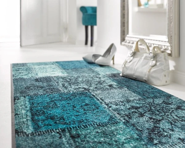 Wycieraczka do butów ozdobna o wymiarach 120 x 75 cm Vintage Patches Turkus