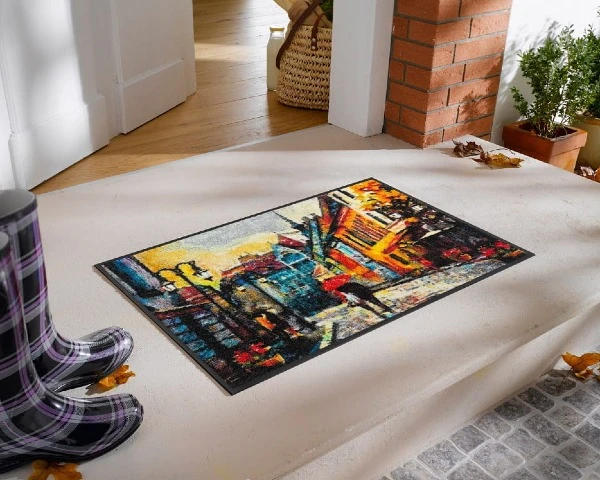 Wycieraczka do butów to doskonała propozycja dla osób, które chcą uatrakcyjnić wnętrze domu lub mieszkania. Produkt posiada 5-letnią gwarancję co daje pewność, że zakupiony produkt jest najwyższej jakości. Wycieraczka została wykonana w technologii wash+Dry, która gwarantuje łatwość konserwacji zapewniając jednocześnie wyraziste kolory. Wycieraczkę bez przeszkód można prać w pralce, jednak należy pamiętać o zastosowaniu płynu zmiękczającego oraz temperatury 60°C. W celu wysuszenia maty należy ją położyć i pozostawić do całkowitego wysuszenia lub użyć suszarki bębnowej (maksymalna temperatura 90°C). Dywan na korytarz można bez przeszkód stosować w pomieszczeniach wyposażonych w ogrzewanie podłogowe
