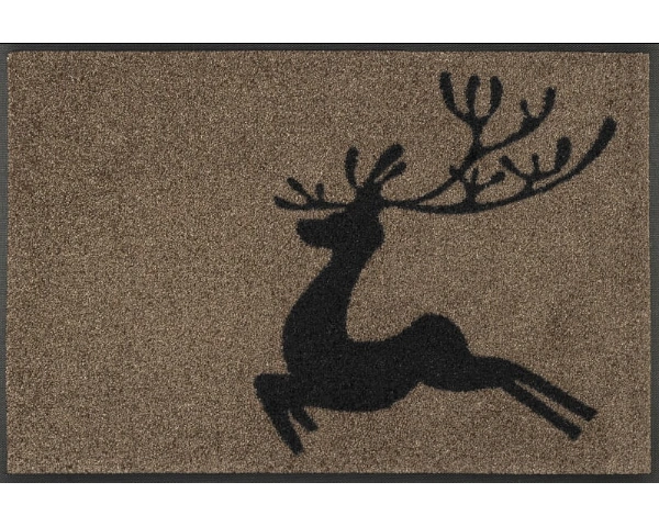 Wycieraczka do butów świąteczna 75 x 50 cm z reniferem idealnie wprowadza wszystkich w świąteczny nastrój już od progu. Zatrzymuje zimowe zabrudzenia i pozostaje stabilna dzięki antypoślizgowemu spodowi.