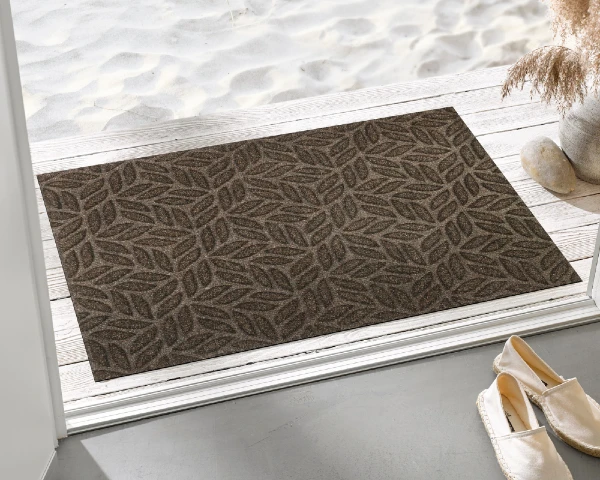 Brązowa wycieraczka zewnętrzna 90 x 60 cm Dune Leaves w oryginalny wzór liści została zaprojektowana nie tylko by ozdobić wejście do domu, ale przede wszystkim skutecznie zatrzymywać brud i wilgoć. Powierzchnia wycieraczki, z grubą trójwymiarową strukturą, działa jak szczotka. Zbiera także wodę w głębiej położonych rowkach i pozwala jej swobodnie odpływać. Wycieraczka do butów Dune świetnie sprawdza się także we wnętrzach. Położona przed drzwi balkonowe lub na taras zatrzymuje "ogrodowe" nieczystości na zewnątrz. Brązową matę tekstylną można stosować także jako wycieraczkę wewnętrzną do przedpokoju lub na korytarz.