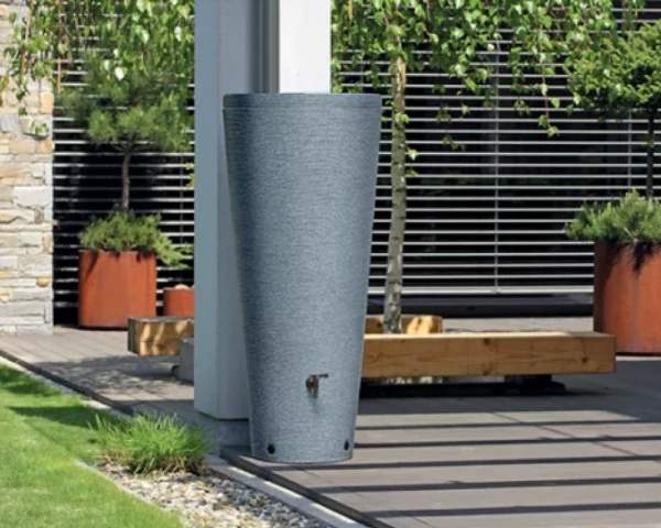 Szukasz zbiornika, który nie wymaga maskowania w ogrodzie? Tubo 210L to designerska odpowiedź na potrzeby nowoczesnej architektury. Jego surowa, cylindryczna bryła o matowym wykończeniu imitującym grys granitowy (431UG) sprawia, że retencja wody przestaje być techniczną koniecznością, a staje się eleganckim detalem Twojej posesji.