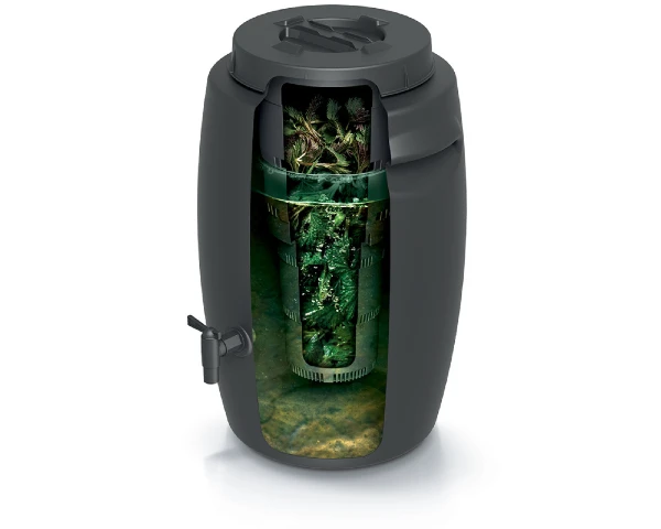 Zbiornik do wytwarzania naturalnego, najlepszego nawozu płynnego np. z pokrzyw. Specjalna beczka z kranikiem oraz wewnętrznymi pojemnikami to kompletny zestaw do samodzielnego wyrobu ekologicznego nawozu.