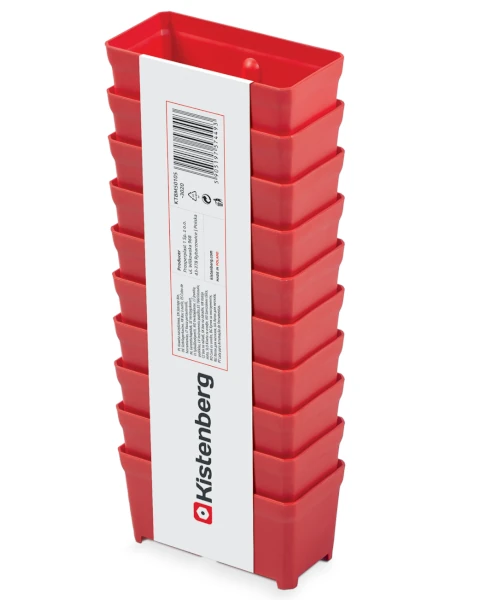 Zestaw 10 pojemników warsztatowych Tager Box 105 x 50 x 50 mm – kompatybilnych z organizerami Kistenberg z serii TAGER oraz TAGER CASE. Wykonane z wytrzymałej mieszanki polimerów, odpornej na oleje i uderzenia. Idealne do przechowywania śrub, podkładek, końcówek i innych drobnych elementów. Kolor czerwony ułatwia identyfikację zawartości.