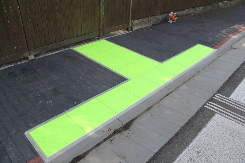 Dobra widoczność wskaźników dotykowych jest równie ważna. Pamiętaj aby stosować odpowiednie, nieoślepiające oświetlenie. Pamiętaj też o wizualnym kontraście płytek do otaczającej powierzchni tak aby były z daleka widoczne.