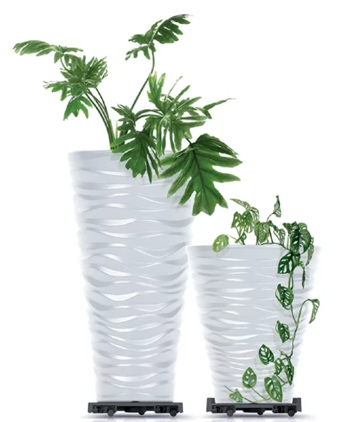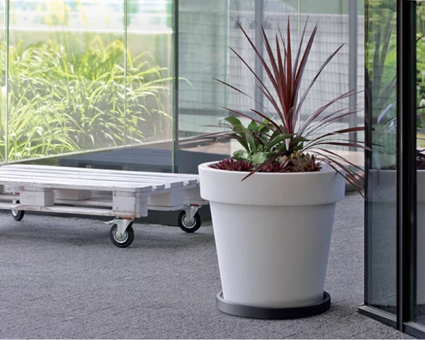 Łatwe przesuwania. Wyposażona w solidne kółka, podstawa umożliwia łatwe przemieszczanie doniczki bez konieczności podnoszenia, co ułatwia pielęgnację roślin i zmianę ich położenia.