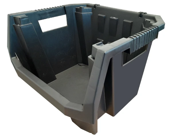Otwory montażowe umożliwiają stabilne mocowanie pojemnika na ścianie lub innym podłożu, co ułatwia organizację przestrzeni. Dodatkowo, pojemnik Truck Max 40 posiada funkcję piętrowania, co pozwala na układanie kilku pojemników jeden na drugim, zapewniając oszczędność miejsca i utrzymanie porządku.