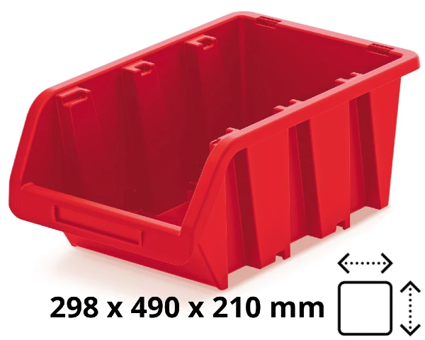 Pojemniki warsztatowe idealnie nadają się do przechowywania przedmiotów w magazynie, warsztacie, garażu czy do ekspozycji towaru w sklepie.