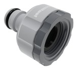 Dzięki zatrzaskom szybkozłącza precyzyjne połączenie uzyskiwane jest tylko za pomocą wciśnięcia szybkozłącza na przyłącze kranowe. W celu odłączenia węża od kranu wystarczy pociągnąć za szybkozłącze z wężem. Konstrukcja umożliwia użycie klucza w celu łatwiejszego montażu. Jest to produkt uniwersalny - pasuje do kranu G3/4"(26,5 mm) i G1" (33,3 mm). Produkt pakowany jest luzem (na przywieszce).