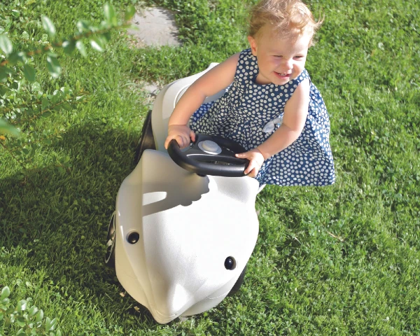 Jeździk w stylu tzw. "wiewiórki" to jeden z najładniejszych kształtów, a do tego użyte tworzywo z którego wykonany jest pojazd jest odporne na promieniowanie UV.