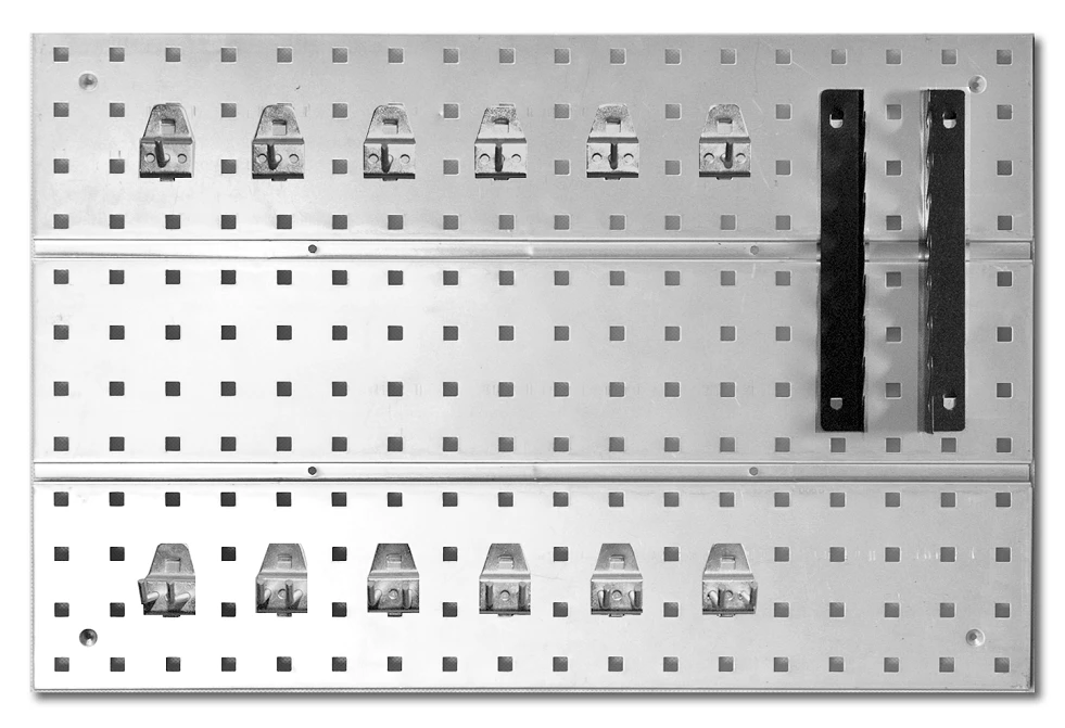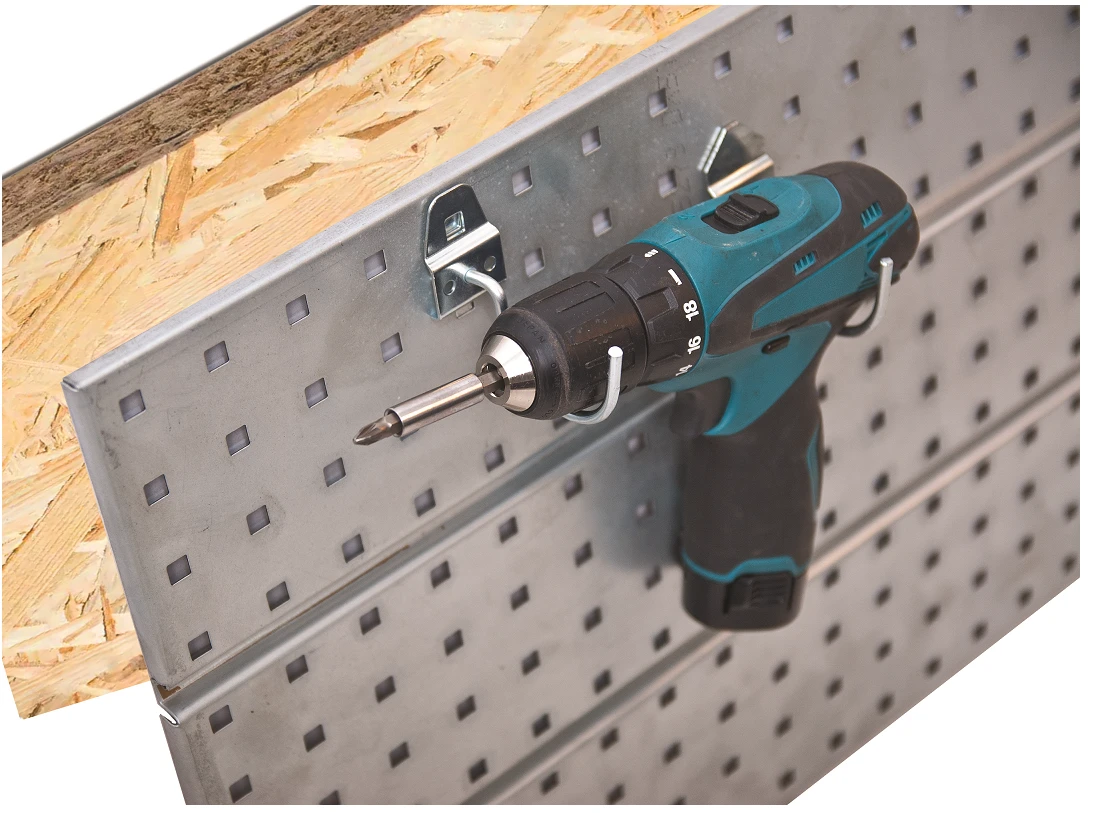 Umożliwia wygodne zamontowanie różnego rodzaju akcesoriów, takich jak listwy, haczyki, organizery czy uchwyty wspomagających utrzymanie porządku wśród małych części i narzędzi.